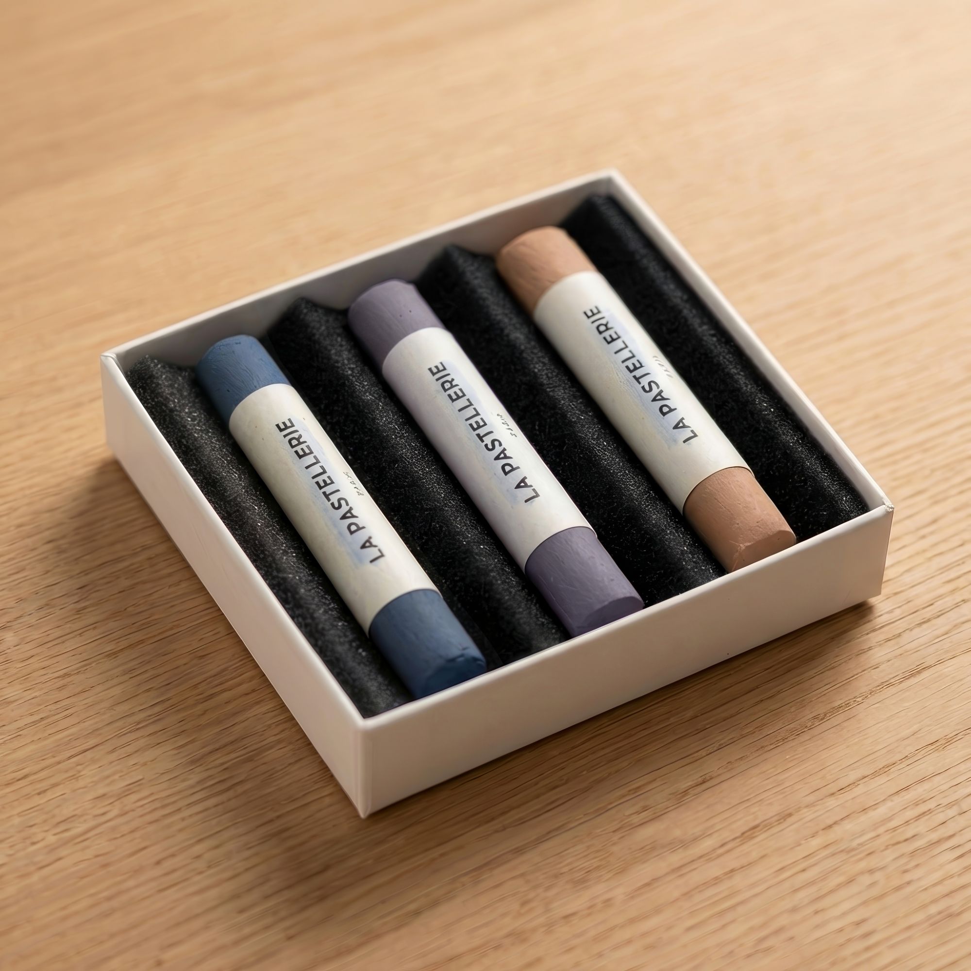 Chaque pastel est façonné à la main dans notre atelier en France, avec une forte concentration en pigments garantissant des couleurs lumineuses et durables. Leur texture unique permet une estompe fluide, des superpositions harmonieuses et un travail précis des détails sur une large variété de supports.